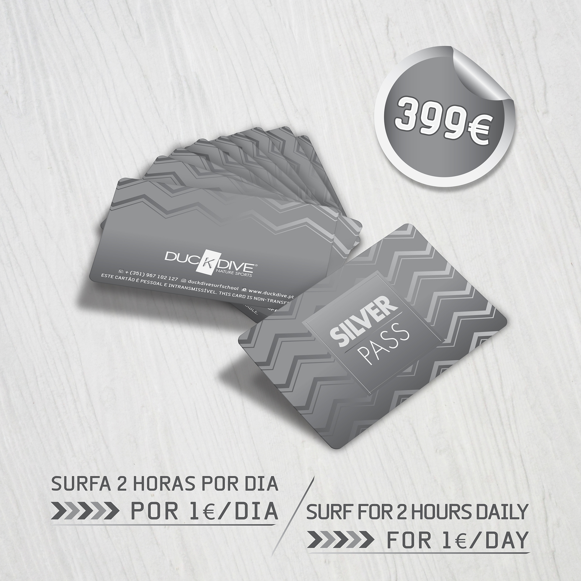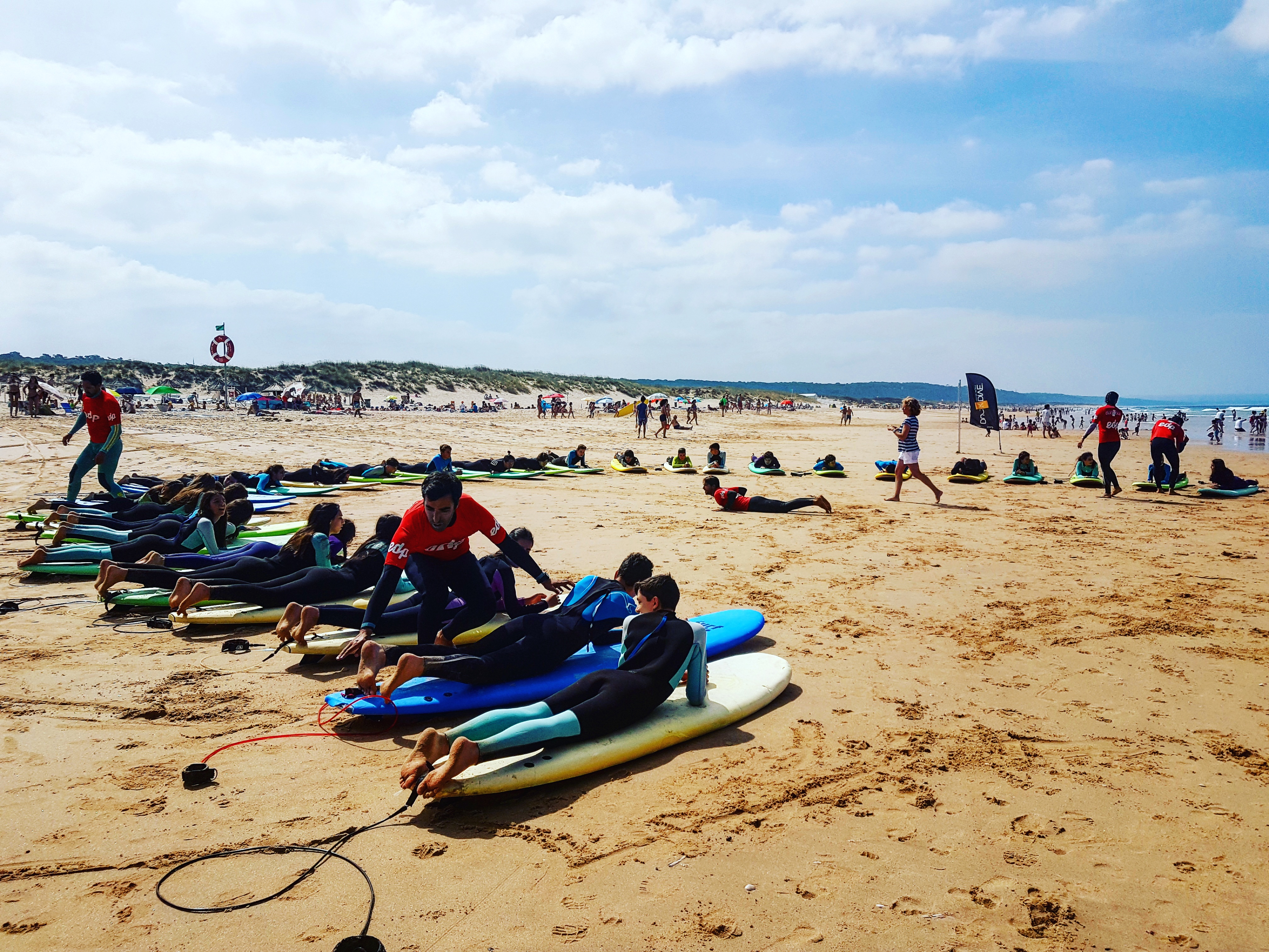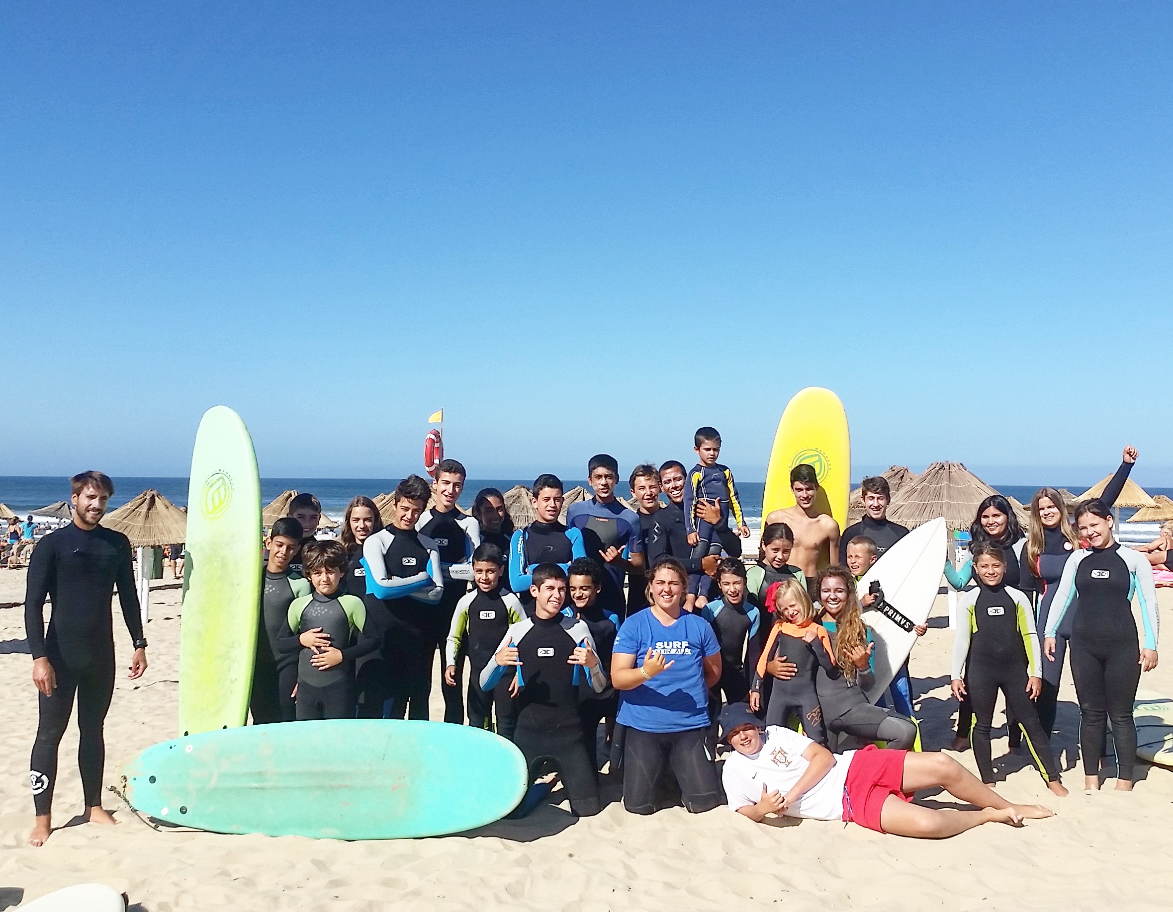 - Fato de surf – Prancha de surf – Licra de surf (pranchas e aulas de acordo com o nível de experiência de cada aluno)